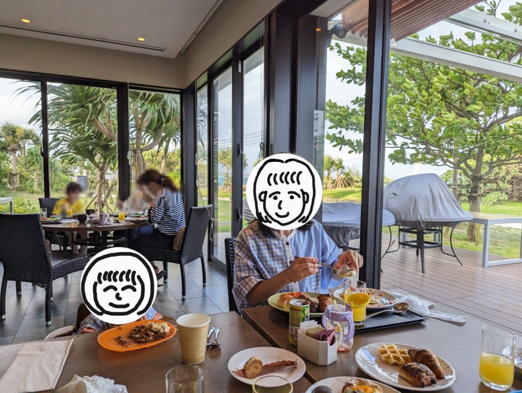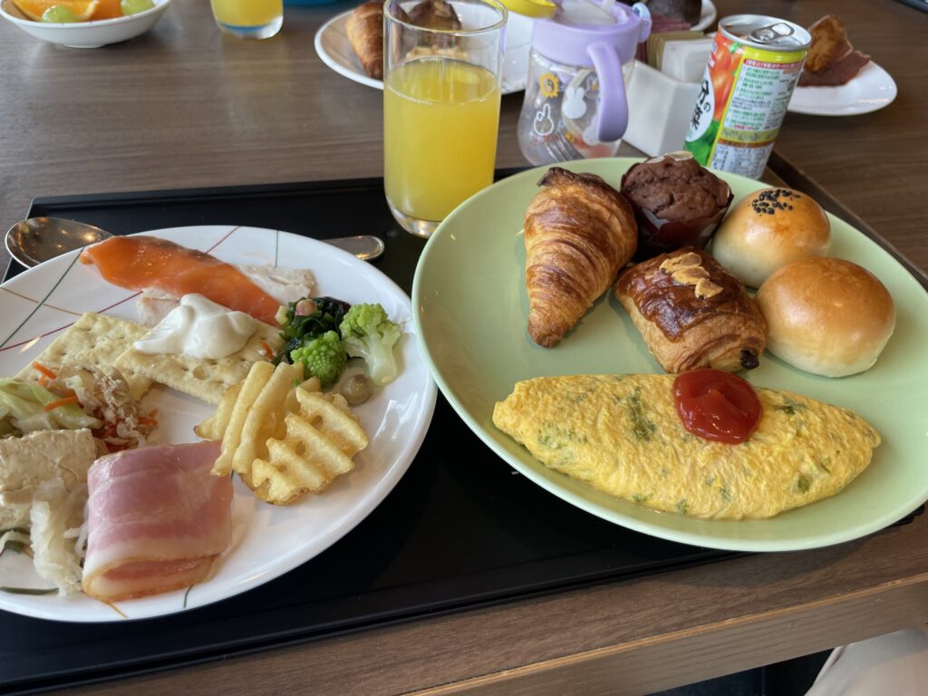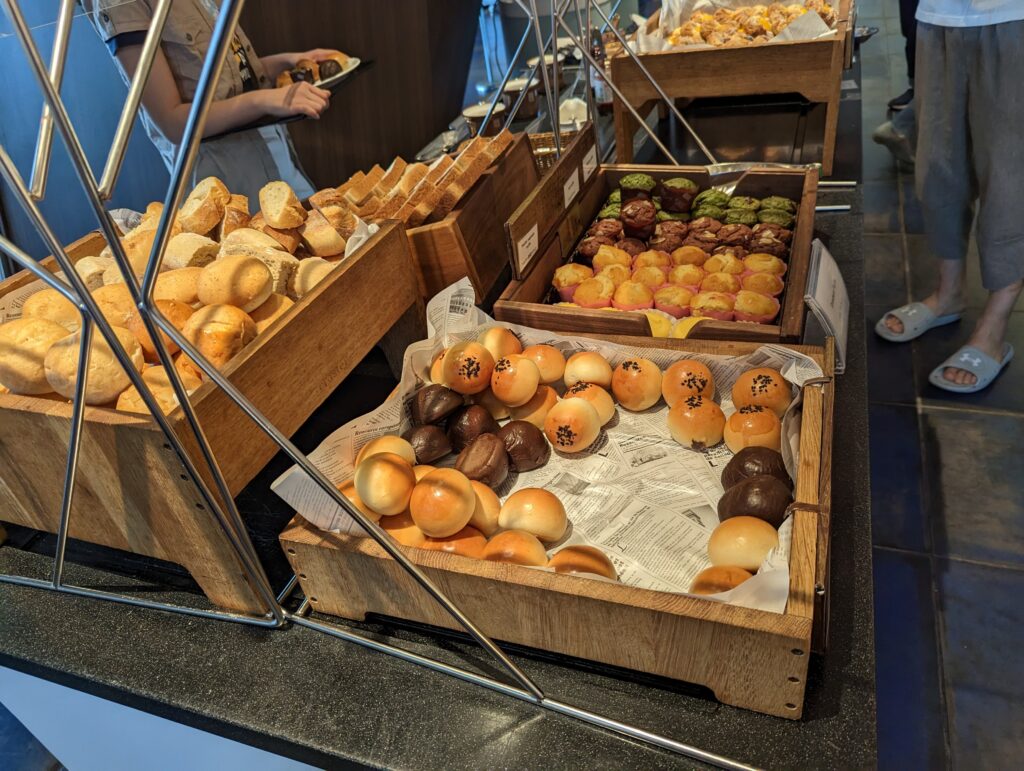 朝食会場は、ラッキーなら海の見える席で食べることもできますし、ロビー近くで食べる朝食もよかったです。個人的にはパンの種類が豊富な朝食ビュッフェは優秀だと思っているので、贅沢な朝食をいただくことができました。
