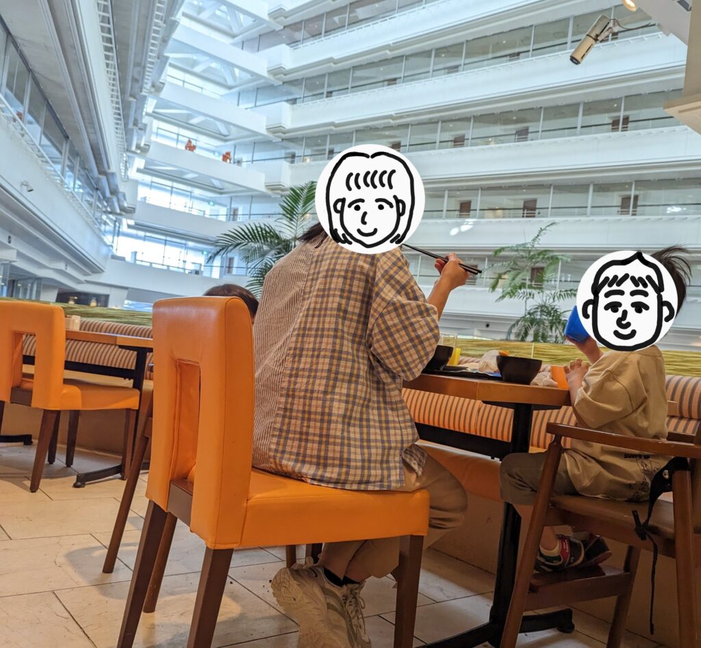 周囲にはキッズスペースもありましたが、4歳と2歳にはちょっと大きく、隙を見てちらっと遊びましたが、基本的には走り回る幼稚園〜小学校低学年ぐらいの子供たちに圧倒されてしまいました。