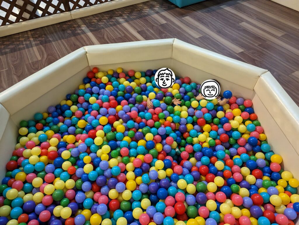 ただ、2人ともボールプールを気に入って埋まって遊んでいました笑