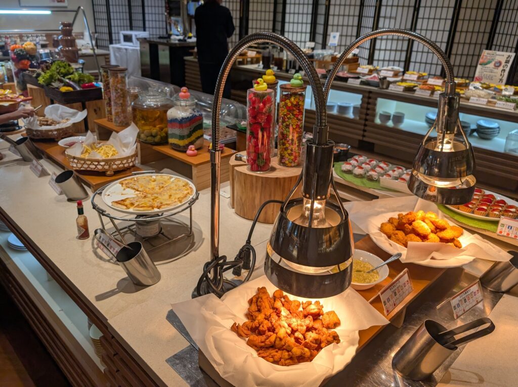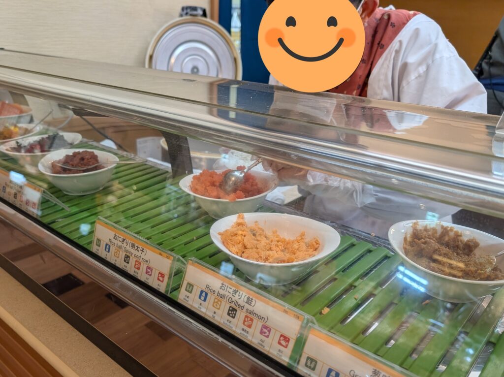 朝食も同じ会場で、目玉はその場で握ってくれるおにぎりです。にぎりたてのおにぎりって食べる機会がほとんどないですが、子供でも食べやすくて美味しいです。