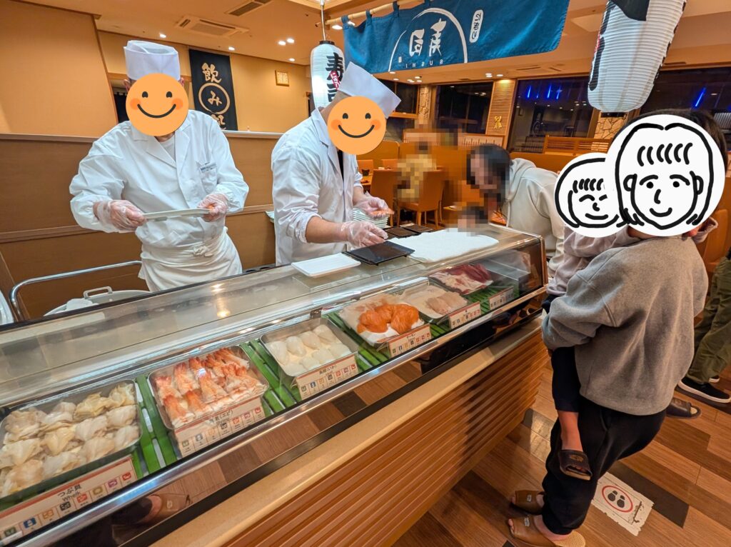 夕食時の目玉の1つとしてお寿司を握ってくれます。何個でも注文できるのでみんなで結構な数を食べました笑