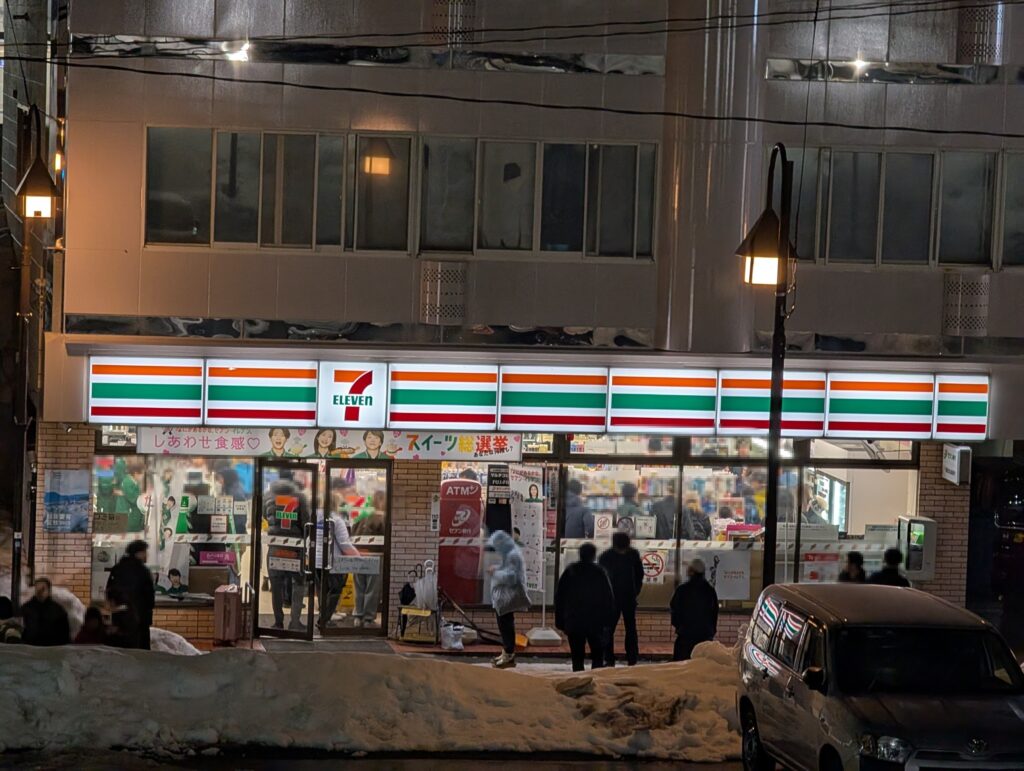 夜の9時ぐらいに「お酒でも買おうかな」と訪れましたが、店舗の中をぐるりと一周、30人ぐらいは並んでいてレジ2つで一生懸命消化していました。混雑する条件として、①客足の季節変動が大きいのでホテルの数の割に駅周りのコンビニが1つしかない②若い人や海外の人の夕食や酒盛りのための買い出しが多いので、カゴいっぱいに商品を詰め込んだ人が多い、の2つの理由があると思いますが、夕方ぐらいからずっと混みっぱなしでした。