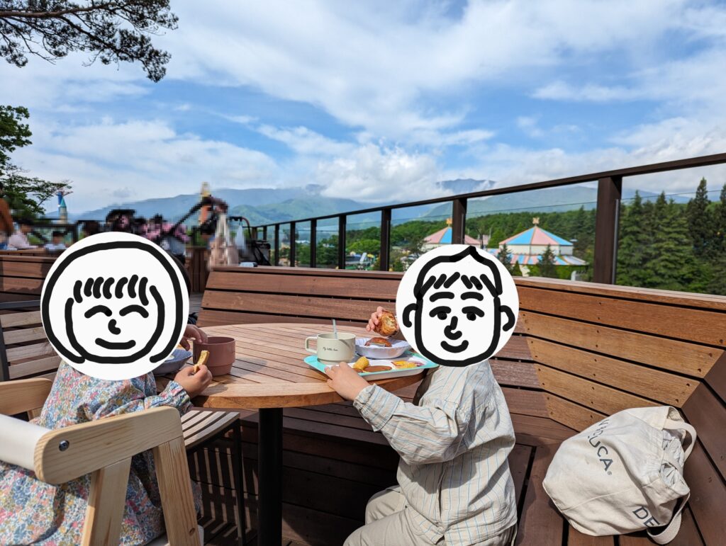 季節も天気もちょうどいい気候でテラス席が非常によかったです。夕食会場もそうですが、食べ残し含めて食器の返却エリアがむき出しなのでラグジュアリーな雰囲気ではありませんが、キッズエリア含めてメニューも充実していたのでトータルよかったです。