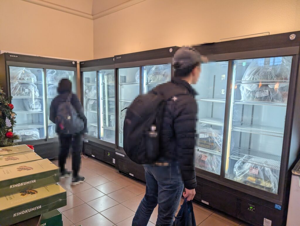 部屋食を選択された方はフロント棟にある冷蔵庫ゾーンから自分で食材をピックアップして部屋に戻ります。
