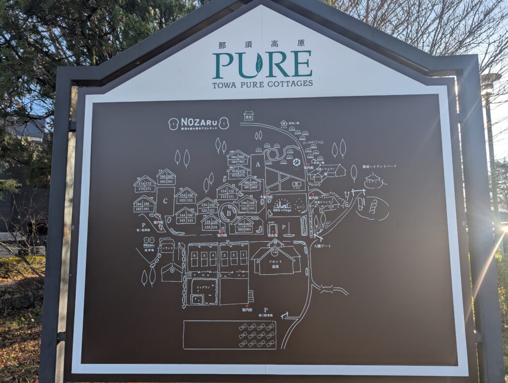 「貸別荘」と紹介させていただきましたが、「Airbnb(エアビー)」とは違ってフロント棟があってチェックイン・チェックアウトがあり、フロント棟に大浴場があったり、フロント近くに夕食をとれる『BBQ village』やレストランもあります。