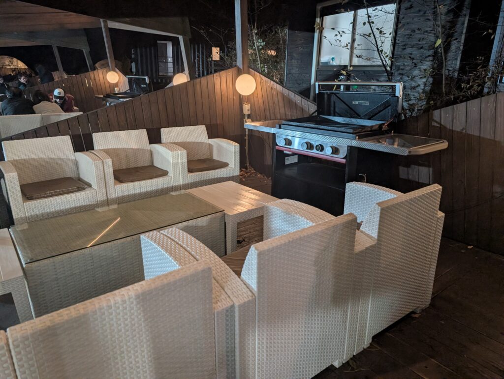 バーベキューを選択すると季節によっては外は寒い!となりますが、バーベキュー会場にはちょっとだけ室内の座席があります。1回目に行ったときは中か外かを選ばせてくれて中を選びましたが、2回目は季節柄すぐに埋まったのか選択の余地なく外になりました。。