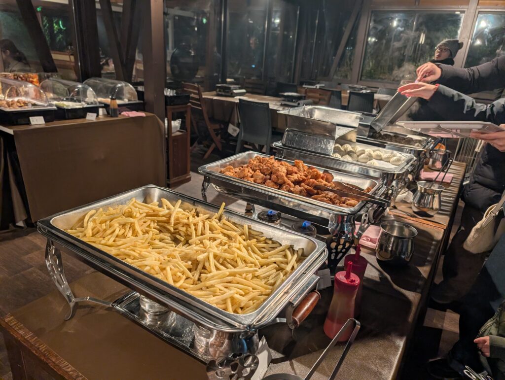2025/11~2026/3まで上述の朝食会場が改修工事に入っており、代わりに那須ハイランドパーク内のフードコートでの朝食になります。開場前のテーマパークに入れるのは多少のワクワク感はありますし、これはこれでいい経験、、と割り切れればいいですが、通常の朝食と比べるとさすがに見劣りはしました。