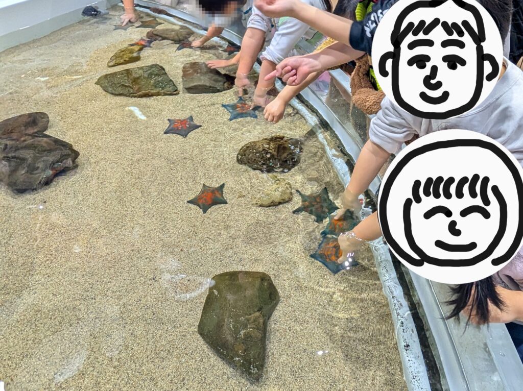 『タッチングプール』には何種類か触れる生き物がいましたが、この時間帯はヒトデだけ触ることができました。