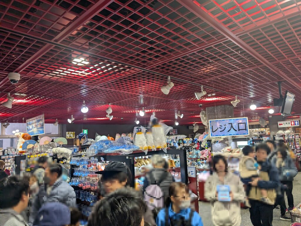 入口の外にあるショップはけっこう大きく、ところ狭しと商品が並んでいます。通路が狭いので人が多い日はぶつかりながら見るぐらいの雰囲気です笑。オリジナルアイテム含めて商品数は多いので思わず長居してしまいます。