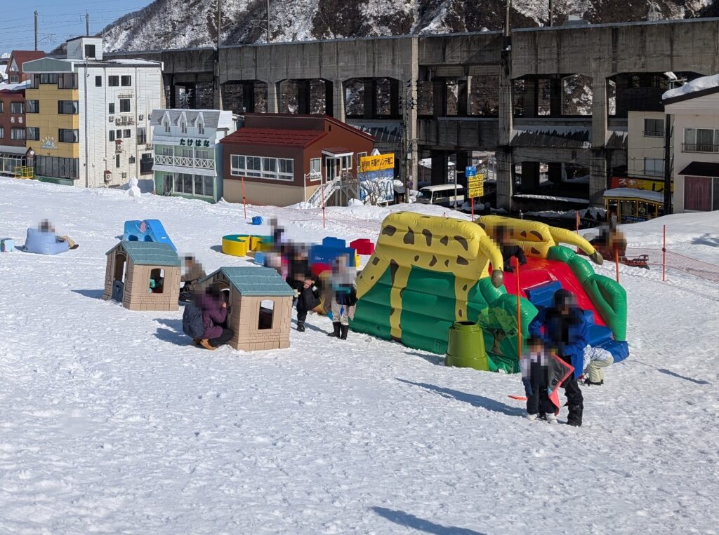 『山ろくエリア』は初心者やファミリーがほとんどなので子連れでも安心です。また、山ろくエリアをさらに細分化すると『ファミリーコース』と『ゆきあそびパーク』があり、ゆきあそびパークに入るにはチケットが必要なので完全に子連れしかいません。
