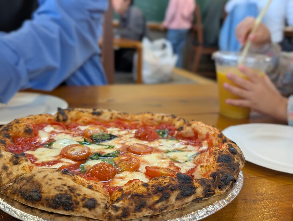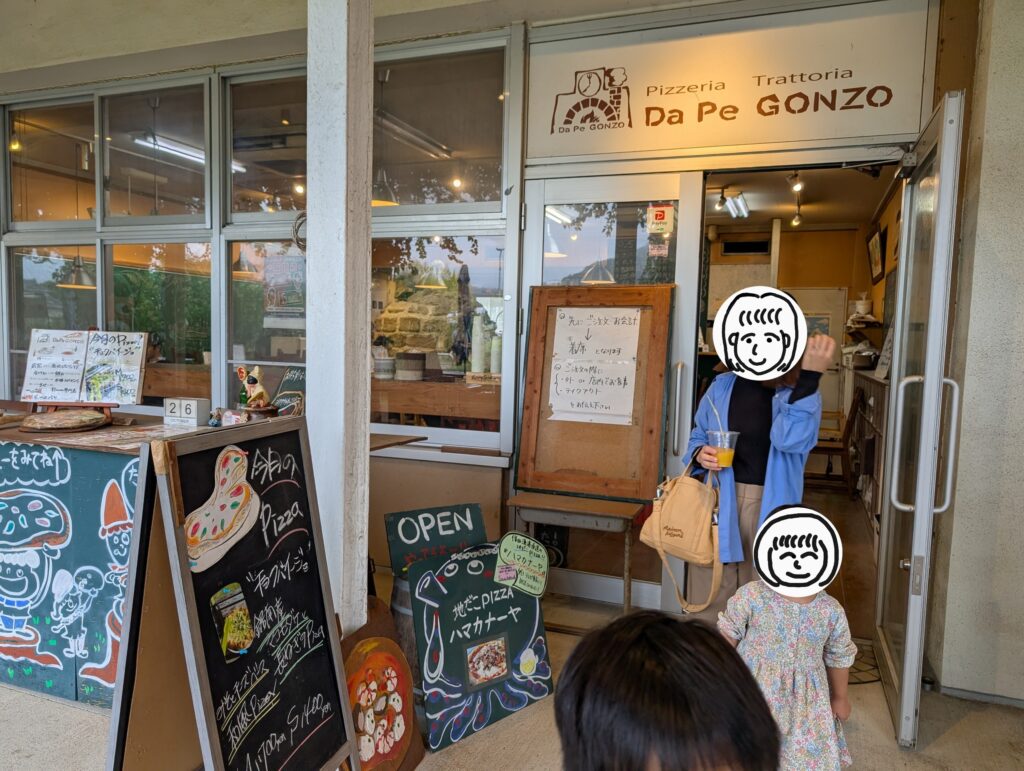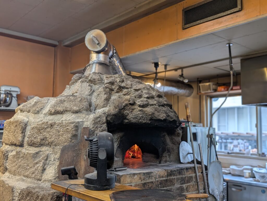 飲食店も豊富ですが、この日はランチに『Pizzeria Trattoria Da Pe GONZO』でピザをいただきました。店内は例によって教室感をそのまま残していますが、不釣り合いなぐらい本格的なピザ窯もありました笑