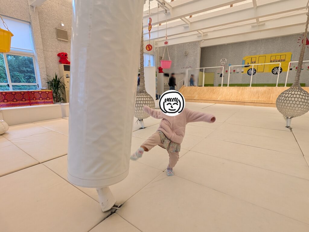 さらにようちえん部分には幼稚園の元体育館を使った『プレイカフェ』があり、カフェ利用してもしなくても遊ぶことができます。あとはようちえん部分の屋外にちょっとした遊具もあります。