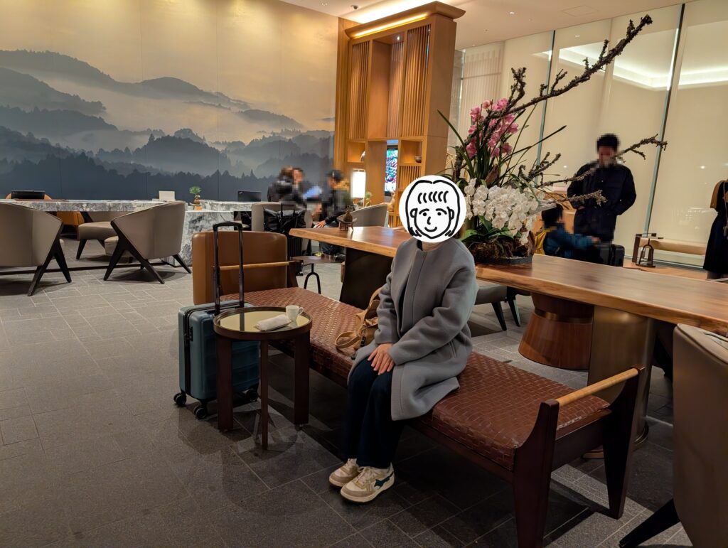 ラウンジはエレベーターを降りてからのシンプルな通路の突き当りにあってなんとなく秘密の部屋感があります。天井が高い&窓が大きい&座席同士に適度な距離感があるので実際以上に広さを感じて開放感があります。
