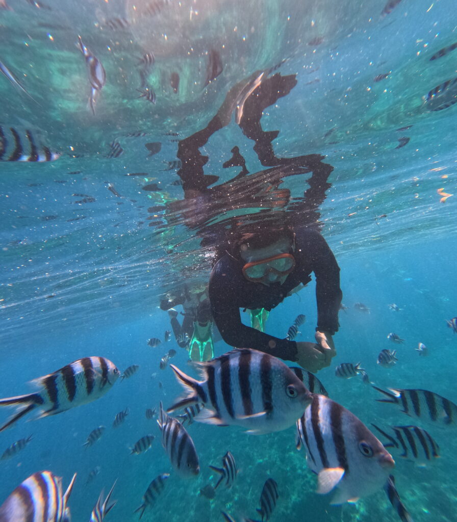 朝食にハンバーガーを食べながらせっかくだからと思い立ってシュノーケリングを予約し、ワークマンで水着とタオルだけ購入して訪れました。『青の洞窟』に入れる事業者さんは無数にあり、私が予約したところは「ソロ歓迎!」と書いてありましたが残念ながらソロは私一人でした笑。ダイビングはフライトまで12時間空ける必要があるのでシュノーケリングにしましたが、なかなか感動しました。ただ、ソロに1時間半のシュノーケリングは長かったので、ソロでの体験を考えている方は「体験時間」で事業者さんを比較するといいかもしれません。