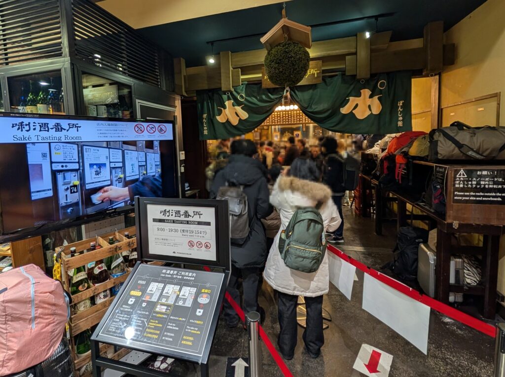 越後湯沢駅には『ぽんしゅ館』の利き酒コーナーという、日本酒の試飲マシーンがずらりと並ぶ有名な一画があるのですが混雑していて入ることができませんでした。「新幹線乗車の30〜40分前ぐらいに駅に着いてぽんしゅ館行こ!」は少なくともスキーシーズン日曜日の午後はムシが良すぎました、、、。